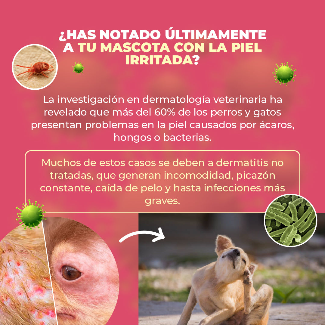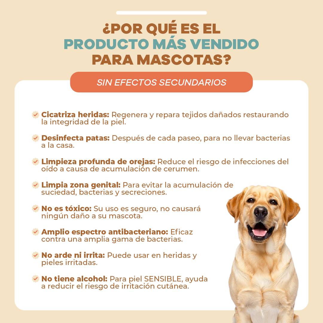 Su fórmula es segura y sin ingredientes tóxicos. En caso de hipersensibilidad a los componentes detenga su uso y consulta a tu veterinario. Al igual es importante mantener el recipiente fuera del alcance de los niños y animales domésticos.